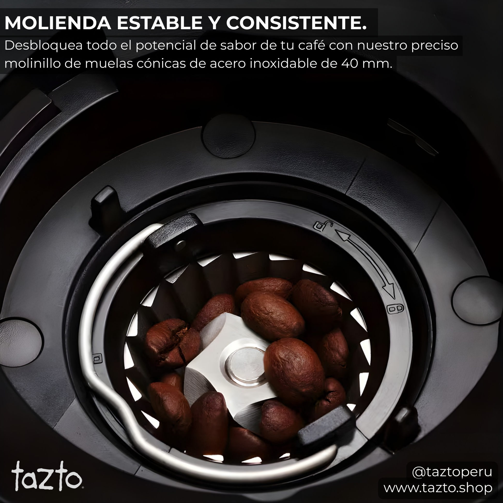 Diseñada con un sistema de bloqueo que facilita su extracción, almacenamiento y transferencia del grano sin derrames. - Un molinillo pensado para quienes buscan precisión, consistencia y sabor profesional en cada taza. Perfecto para tu estación de café en casa o para uso en pequeños negocios.