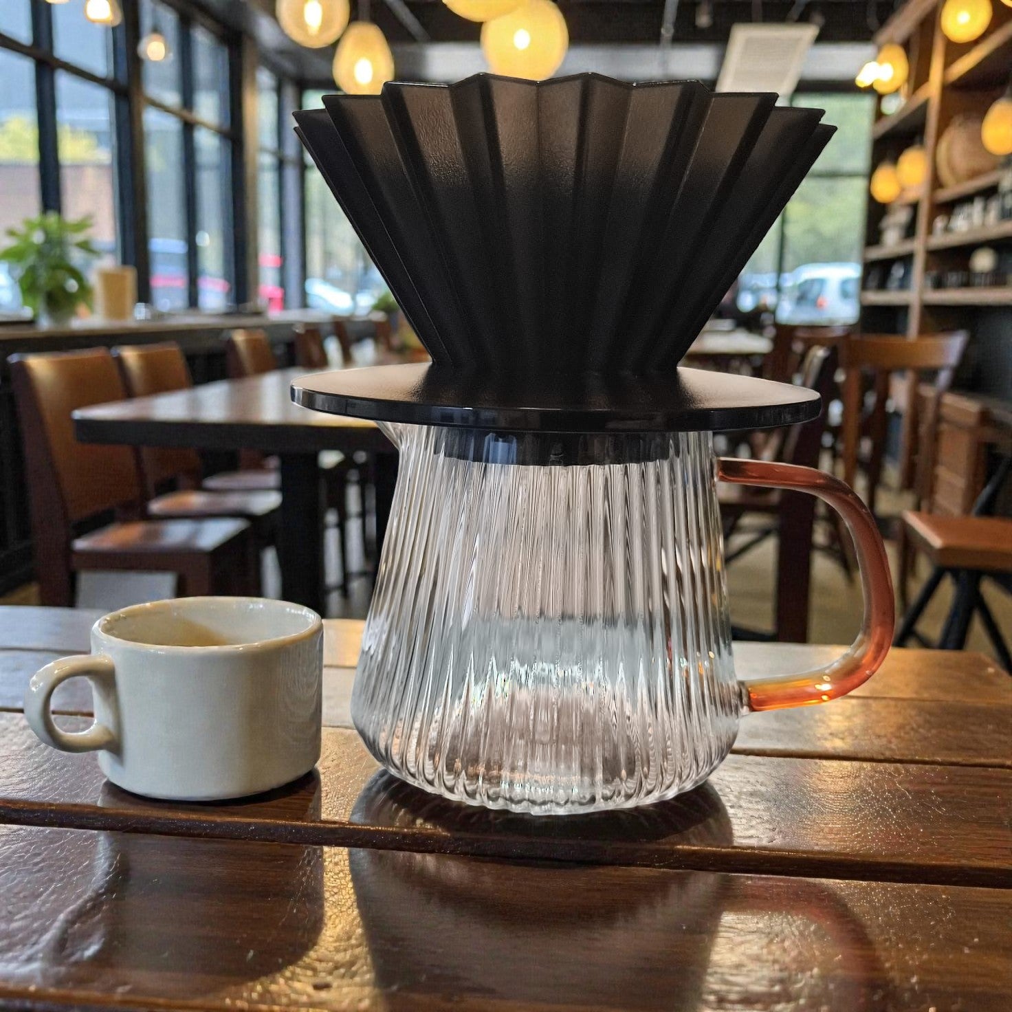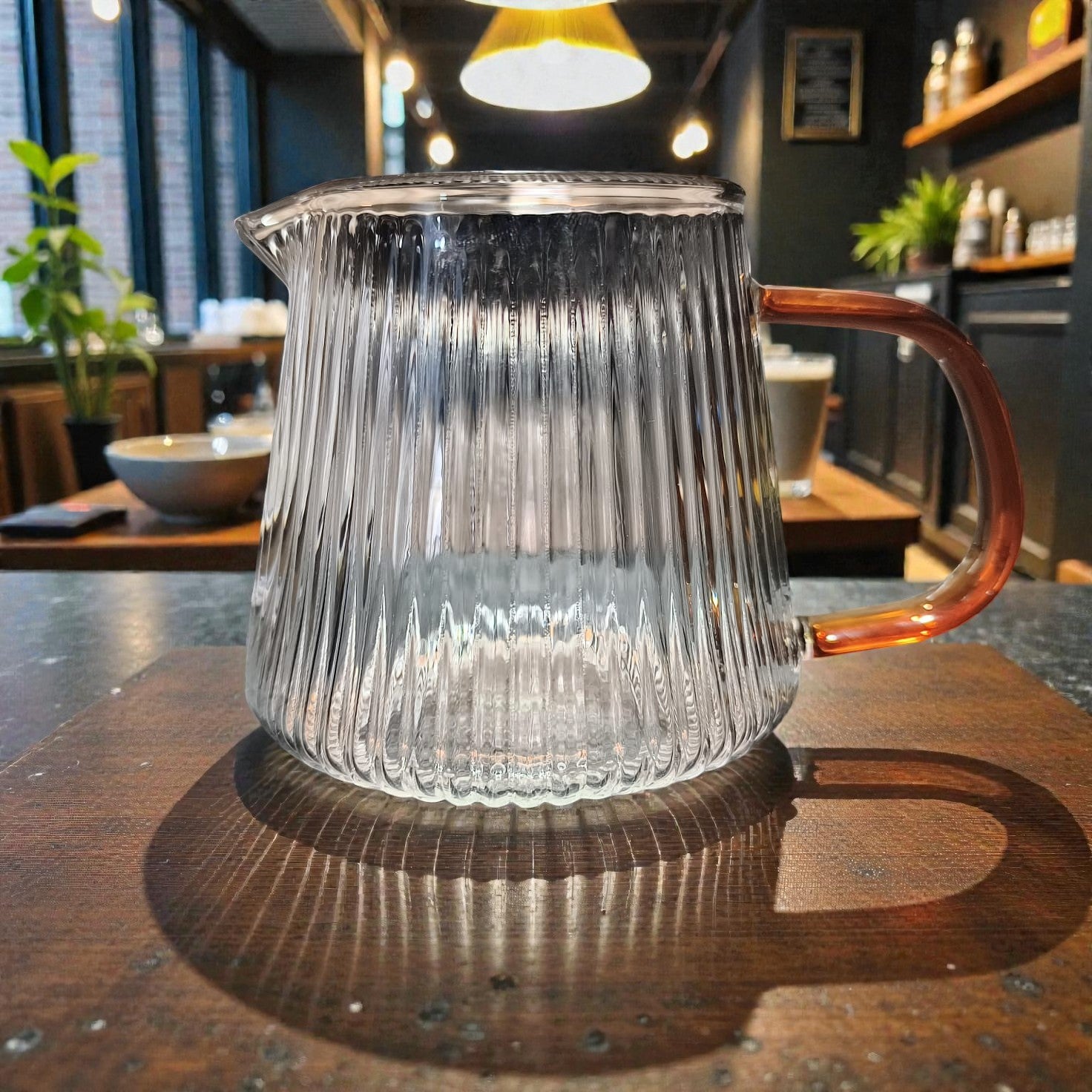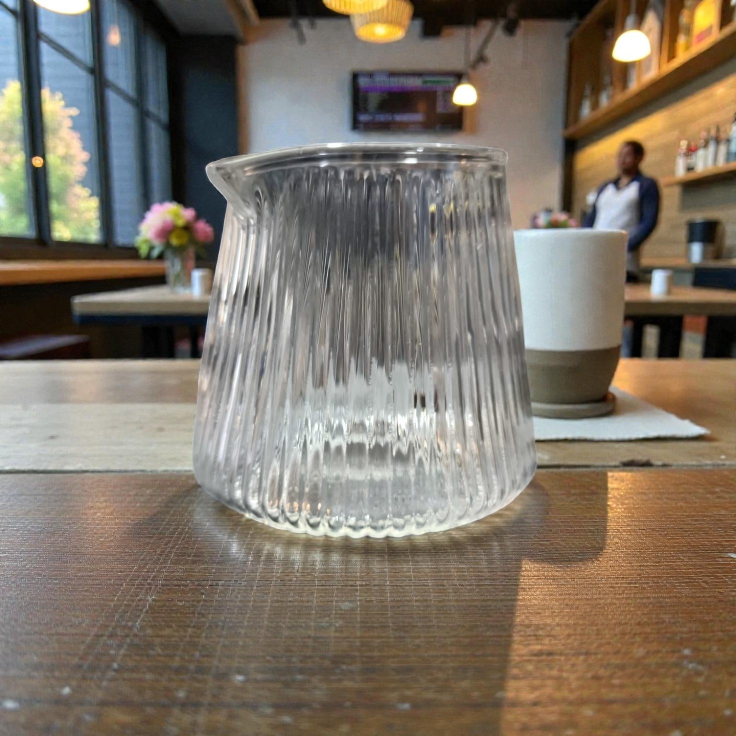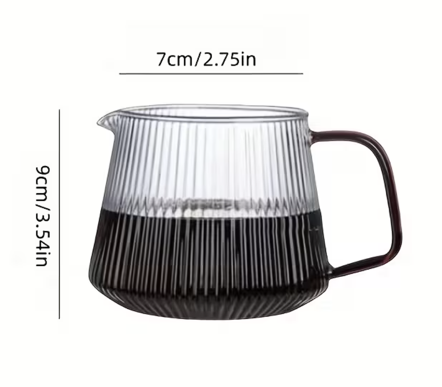 Eleva tu ritual de café con este servidor de vidrio resistente al calor, diseñado para baristas y amantes del buen café. Su cuerpo acanalado no solo ofrece un estilo elegante, sino que también mejora el agarre y la distribución del calor.