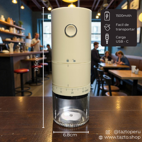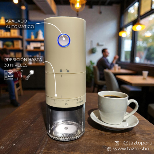 Convierte cada molienda en un ritual perfecto. Este molinillo eléctrico combina precisión, portabilidad y diseño moderno para ofrecerte café recién molido en segundos.